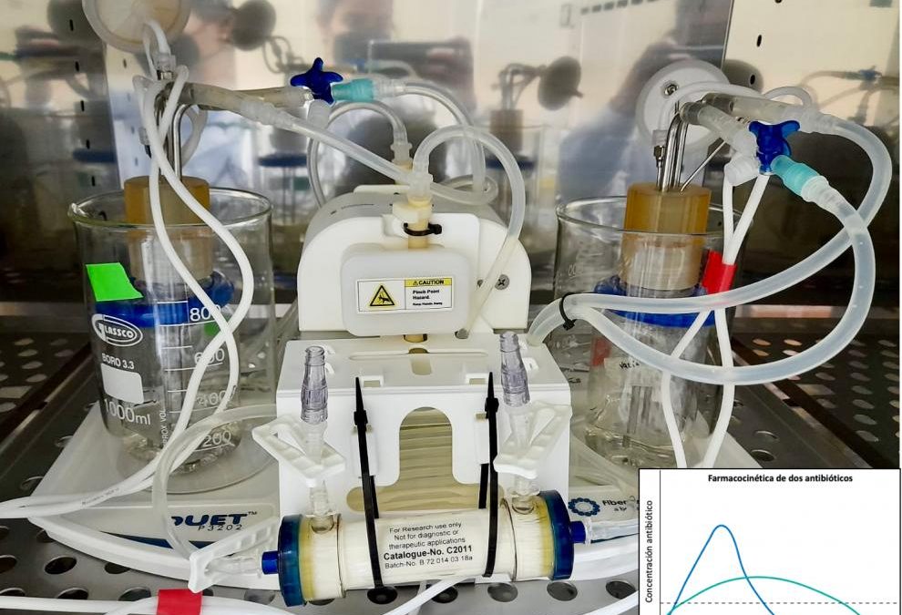 En el HFS, los compuestos a estudiar se inyectan y se eliminan a través de unas bombas controladas de manera automática. La velocidad de infusión y eliminación está diseñada para imitar la farmacocinética (PK) de los compuestos en los pacientes. Además, el sistema puede imitar la PK de varios compuestos a la vez, lo que permite ensayar varios antibióticos en combinación. Esto es importante, puesto que la terapia combinada con varios antibióticos es una estrategia clave para evitar la aparición de resistencias. Luego, los datos que se obtienen del HFS se analizan con modelos matemáticos para predecir las dosis y pautas de administración óptimas del antibiótico en la población de estudio, tanto para aumentar la eficacia de los tratamientos como para reducir la probabilidad de aparición de resistencias.