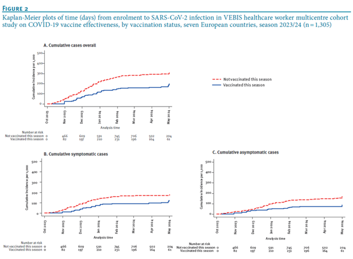 2) Savulescu Camelia, Prats-Uribe Albert, Brolin Kim, Uusküla Anneli, Bergin Colm, Fleming Catherine, Murri Rita, Zvirbulis Viesturs, Zavadska Dace, Gaio Vania, Popescu Corneliu P, Hrisca Raluca, Cisneros Maria, Latorre-Millán Miriam, Lohur Liis, McGrath Jonathan, Ferguson Lauren, De Gaetano Donati Katleen, Abolina Ilze, Gravele Dagne, Machado Ausenda, Florescu Simin-Aysel, Lazar Mihaela, Subirats Pilar, Clusa Cuesta Laura, Sui Jacklyn, Kenny Claire, Santangelo Rosaria, Krievins Dainis, Barzdina Elza Anna, Valadas Henriques Camila, Kosa Alma Gabriela, Pohrib Saftica-Mariana, Muñoz-Almagro Carmen, Milagro Ana, Bacci Sabrina, Nardone Anthony, VEBIS HCW VE study group. Effectiveness of the autumn 2023 COVID-19 vaccine dose in hospital-based healthcare workers: results of the VEBIS healthcare worker vaccine effectiveness cohort study, seven European countries, season 2023/24. Euro Surveill. 2024;29(44):pii=2400680. https://doi.org/10.2807/1560-7917.ES.2024.29.44.2400680