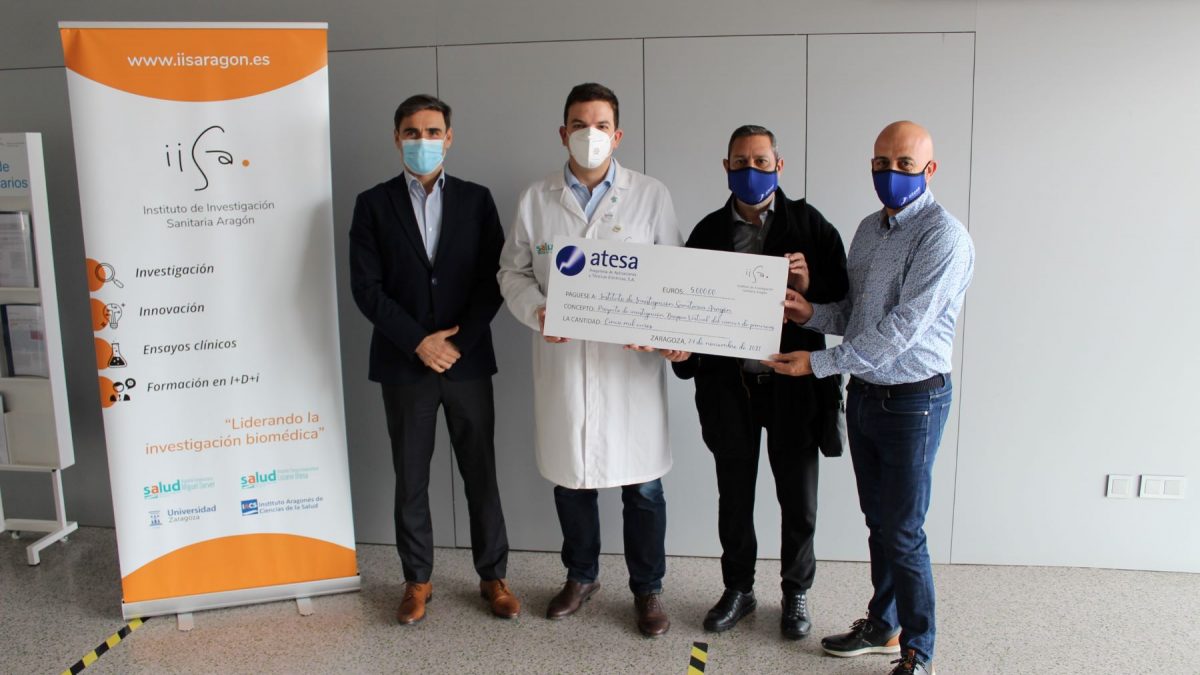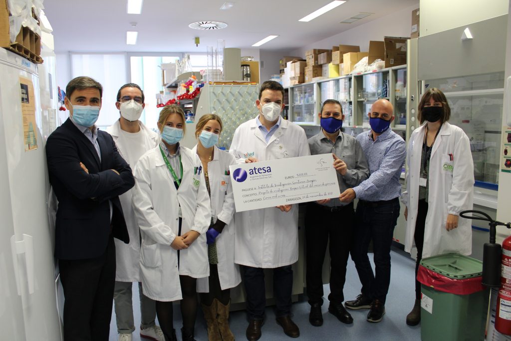 10 diciembre, 2021El grupo de Oncología Molecular del Instituto de Investigación Sanitaria Aragón (IIS Aragón), cuyo investigador principal es Alberto Jiménez Schuhmacher, ha recibido una donación de 5.000 euros de la empresa aragonesa Atesa, dedicada a los montajes eléctricos y la instrumentación industrial.