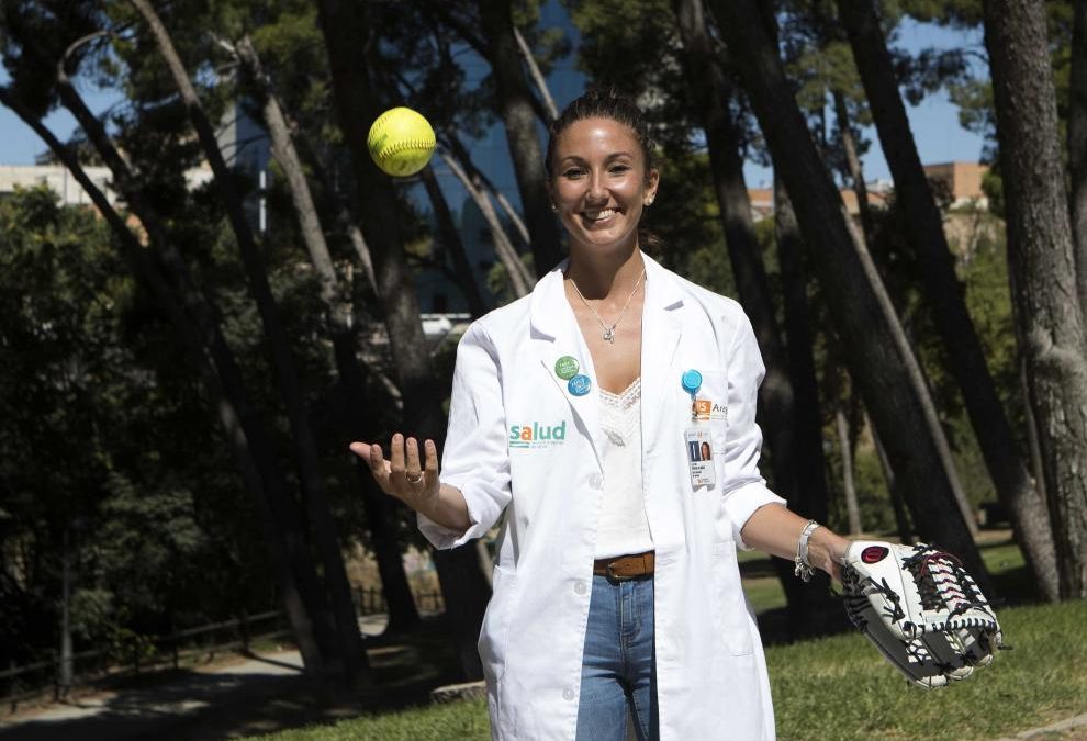 Beatriz Parejo Alonso (Barcelona, 1987) camina por el puente de los Cantautores, en el Parque Grande José Antonio Labordeta de Zaragoza. Trabaja en el cercano Hospital Miguel Servet, tal y como delata la identificación que cuelga de su blusa. En el interior de la mochila que carga lleva la bata doblada, en la misma que guarda la pipeta, una herramienta que utiliza a diario para investigar en el cáncer de páncreas. De un lateral asoma un bate y junto a los útiles del laboratorio se esconde un guante que abraza una bola. También es deportista: pertenece a la Selección Española de Sótfbol, un deporte que guarda similitudes con el béisbol. El ruidito que insiste en cada paso son sus medallas, logros europeos traducidos en joyas de metal. Ambos, tanto el deporte como el tipo de cáncer, son "muy desconocidos", considera que en eso se parecen.