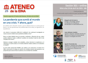El miércoles 14 de abril a las 18.00 horas tendrá lugar de manera online una sesión especial del ATENEO de la EINA para celebrar su 25 aniversario y los 10 años de la Escuela de Ingeniería y Arquitectura.