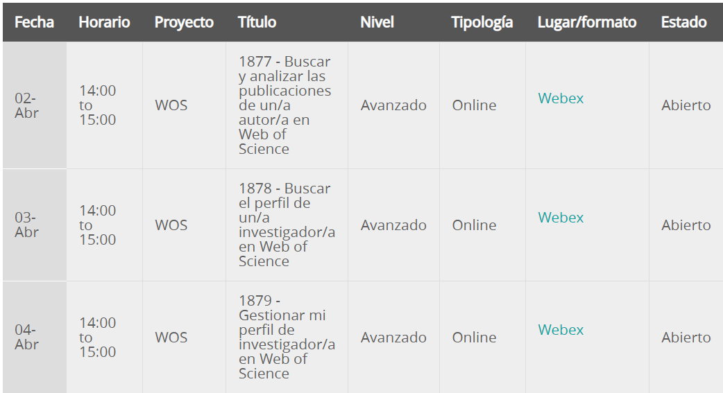 Curso «Buscar el perfil de un/a investigador/a en Web of Science»