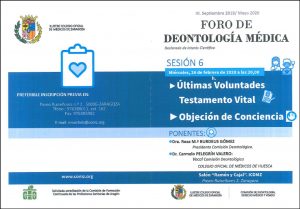 El próximo miércoles, 26 de febrero a las 20.00 horas tendrá lugar el Foro de Deontología Médica. «Últimas voluntades. Testamento vital» y «Objeción de conciencia»