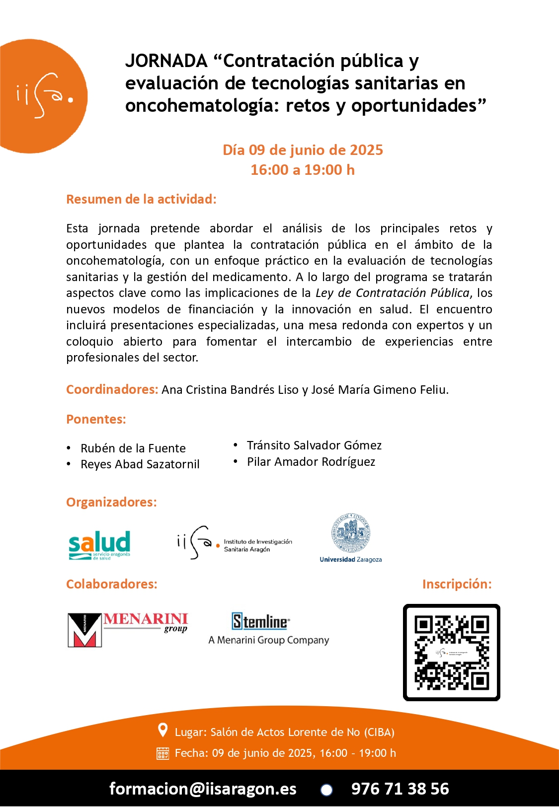 Desde el Instituto de Investigación Sanitaria de Aragón (IIS Aragón) te invitamos a asistir a la jornada «Innovación en hematología: cómo afrontar el cambio de paradigma», que tendrá lugar en formato presencial y online el 13 de noviembre de 2025, de 16:00 a 19:00 h.