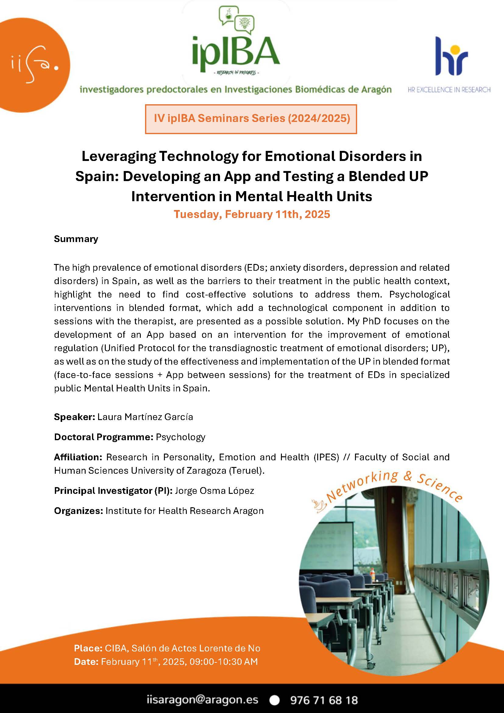 ipIBA Seminar: «Leveraging Technology for Emotional Disorders in Spain: Developing an App and Testing a Blended UP Intervention in Mental Health Units»