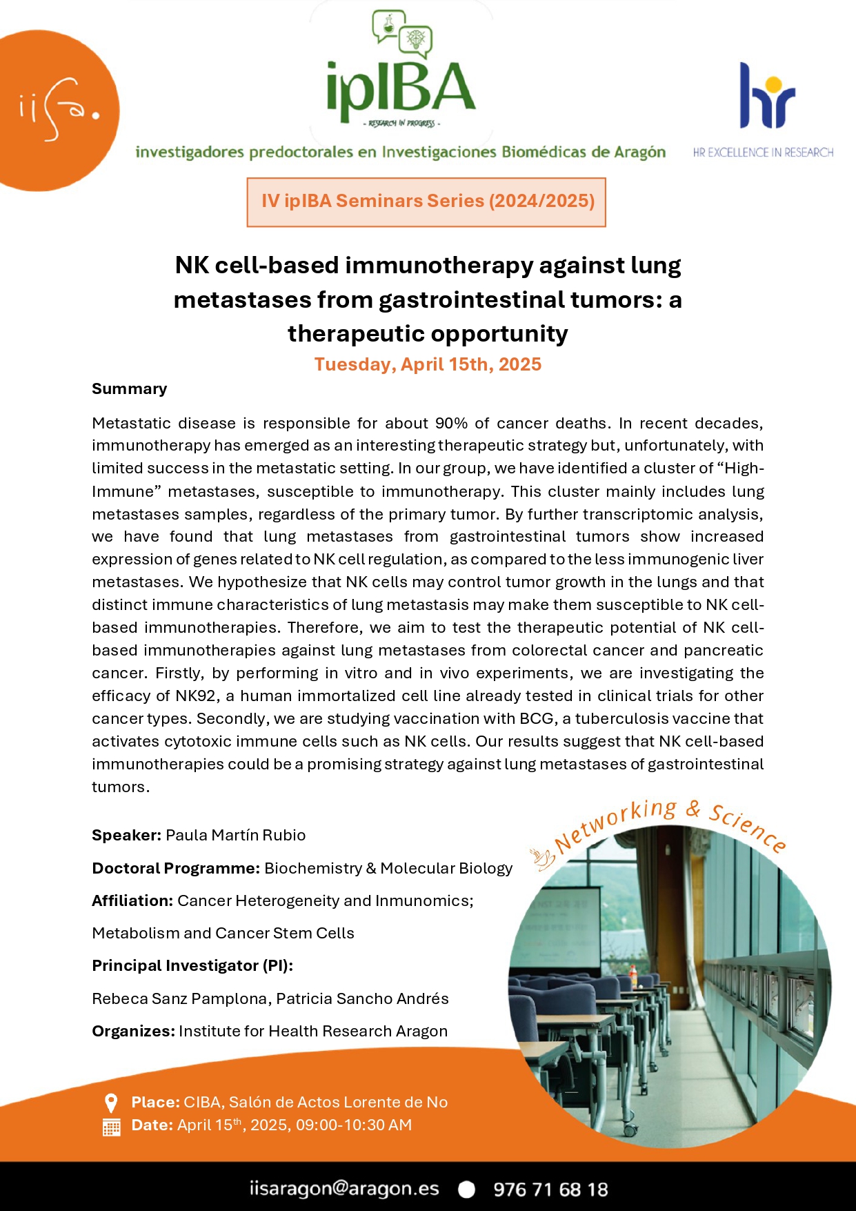 ipIBA Seminar: «NK cell-based immunotherapy against lung metastases from gastrointestinal tumors: a therapeutic oppportunity»