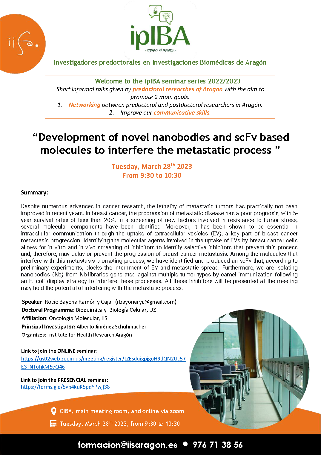 IpIBA seminar series 2022/2023 ““Development of novel nanobodies and scFv based molecules to interfere the metastatic process»