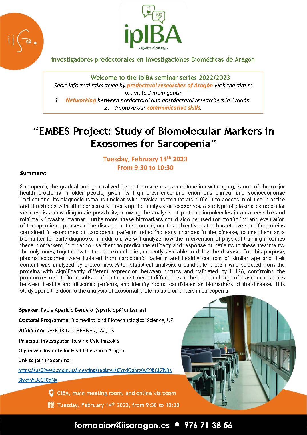 IpIBA seminar series 2022/2023 “EMBES Project: Study of Biomolecular Markers in Exosomes for Sarcopenia”
