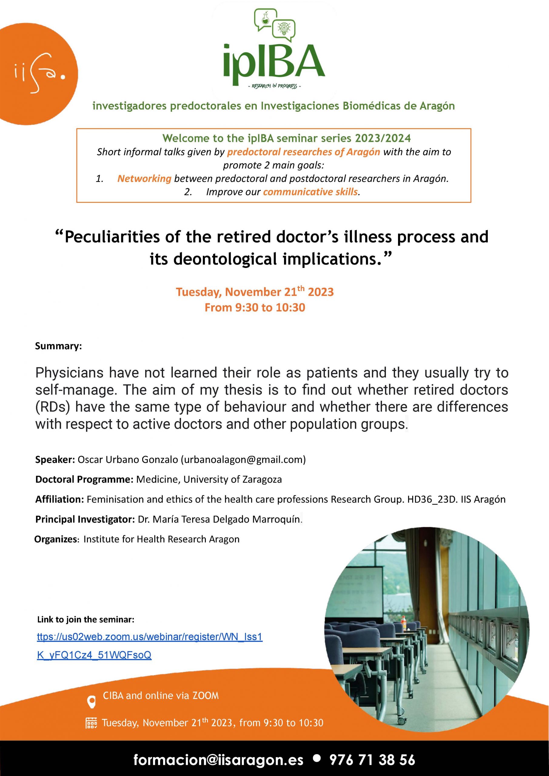 IpIBA seminar series 2023/2024 “Peculiarities of the retired doctor’s illness process and its deontological implications”
