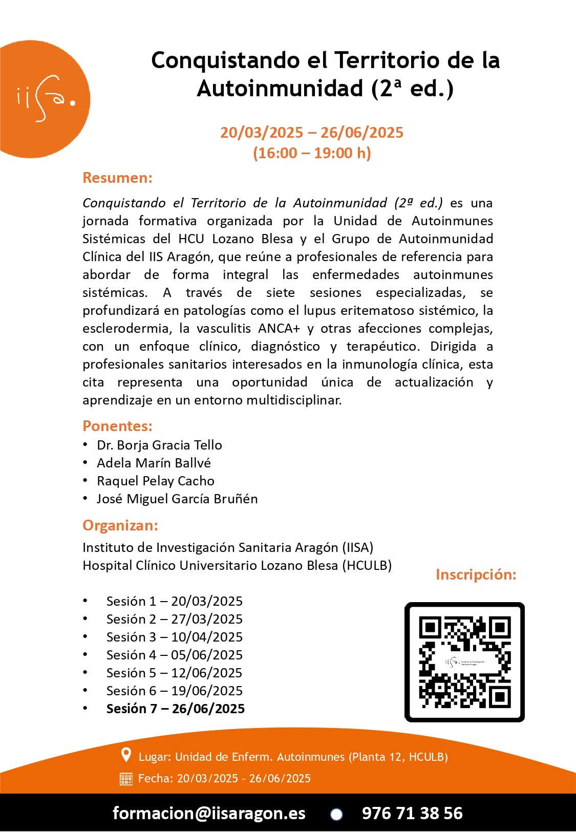 Lugar: Unidad de Enfermedades Autoinmunes (Planta 12, Hospital Clínico Universitario Lozano Blesa) ¡INSCRÍBETE!
