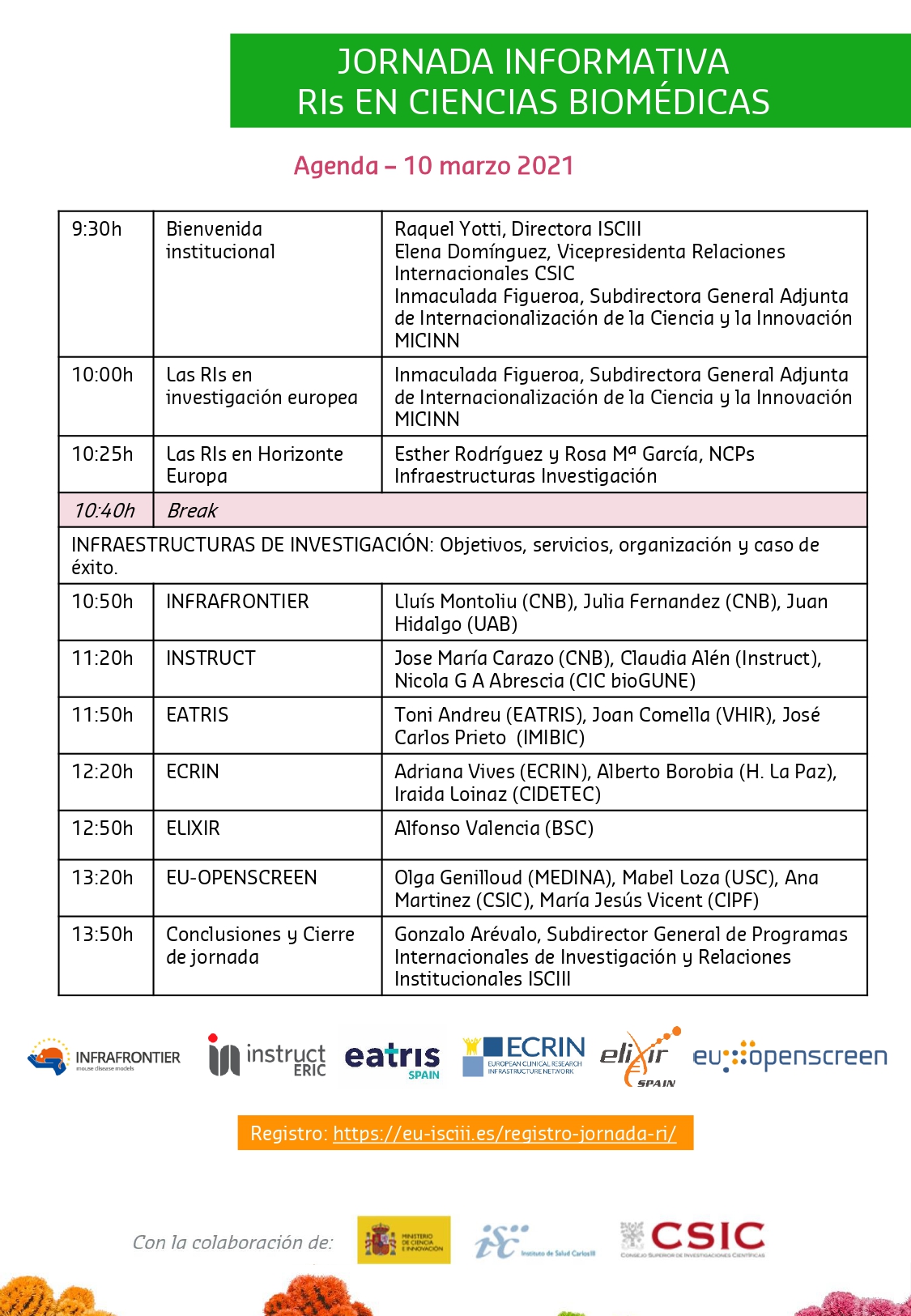 El próximo 10 de marzo, las Infraestructuras de Investigación (RIs en sus siglas en inglés) en Ciencias Biomédicas (EATRIS, ECRIN, ELIXIR, EU-OPENSCREEN, INFRAFRONTIER e INSTRUCT) con el apoyo del Ministerio de Ciencia organizan una jornada nacional con el objetivo de informar acerca de qué son las RIs, el papel que van a jugar en el programa Horizonte Europa y los servicios que pueden ofrecer cada una para vuestra investigación.