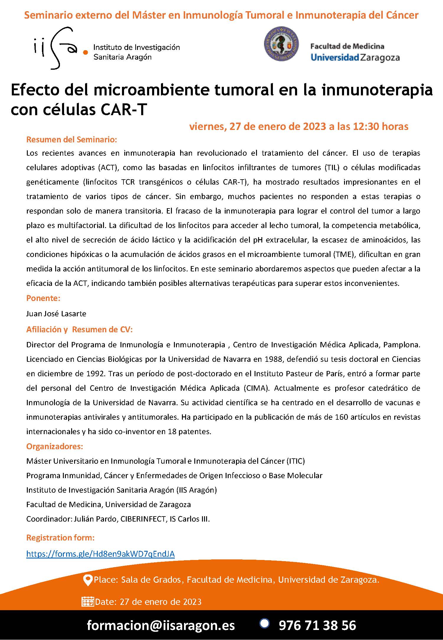 Seminario Biomédico «Efecto del microambiente tumoral en la inmunoterapia con células CAR-T»