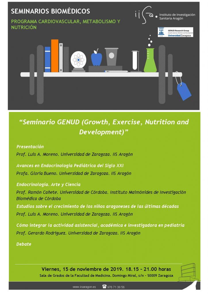 El próximo viernes, 15 de Noviembre a las 18.15 horas tendrá lugar el Seminario Biomédico «Seminario GENUD (Growth, Exercise, Nutrition and Development»