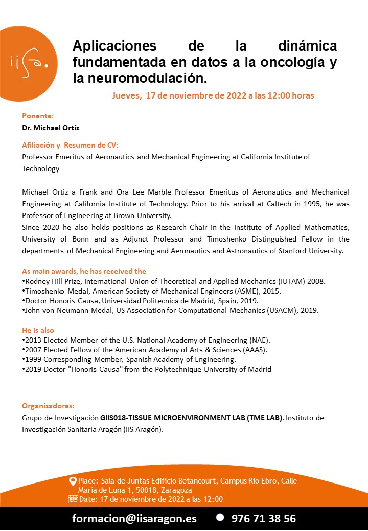 El próximo Jueves, 17 de Noviembre de 2022 a las 12:00 horas se celebrará el Seminario Científico: «Aplicaciones de la dinámica fundamentada en datos a la oncología y la neuromodulación».