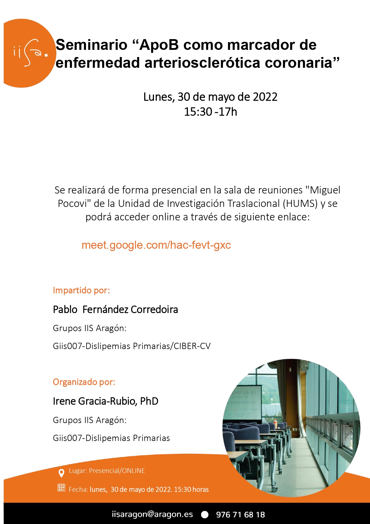 El próximo Lunes 30 de Mayo de 2022 a las 15:30 horas tendrá lugar el Seminario Científico “ApoB como marcador de enfermedad arteriosclerótica coronaria”
