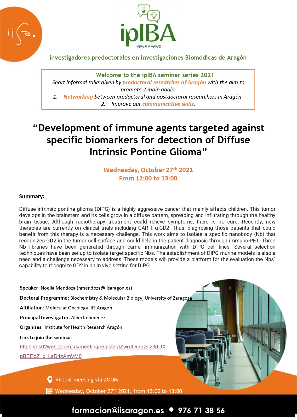 Seminario Científico “Development of immune agents targeted against specific biomarkers for detection of Diffuse Intrinsic Pontine Glioma”