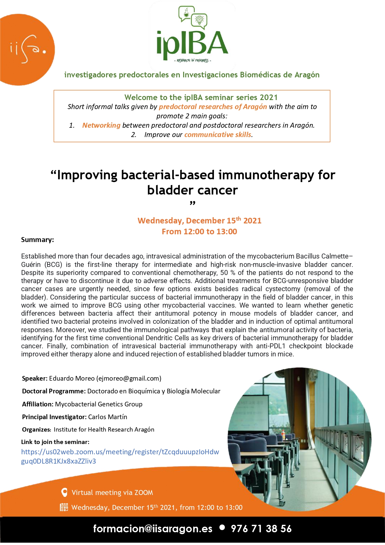 Seminario Científico “Improving bacterial based immunotherapy for bladder cancer”