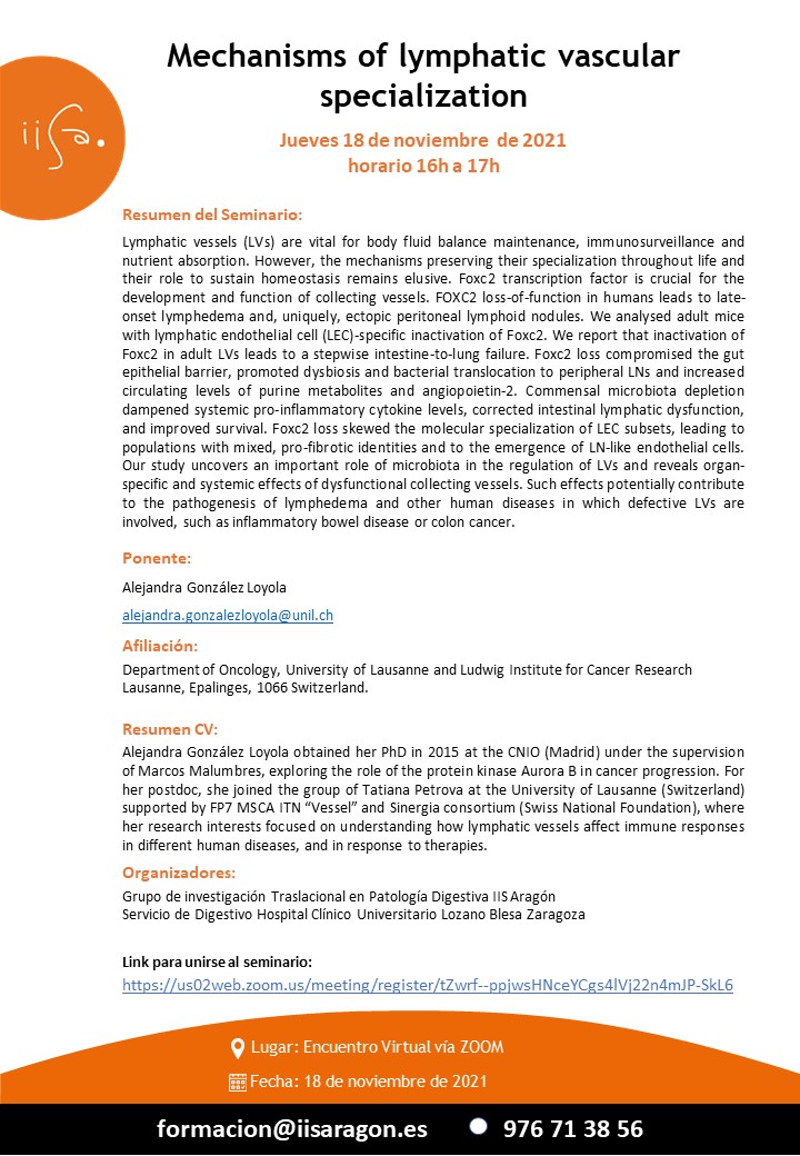 Seminario Científico “Mechanisms of lymphatic vascular specialization”