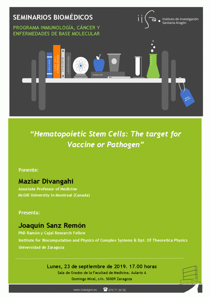 El próximo lunes, 23 de septiembre a las 17.00 horas tendrá lugar el Seminario Biomédico «Hematopoietic Stem Cells: The target for Vaccine or Pathogen”, impartido por el Dr Maziar Divanhagi