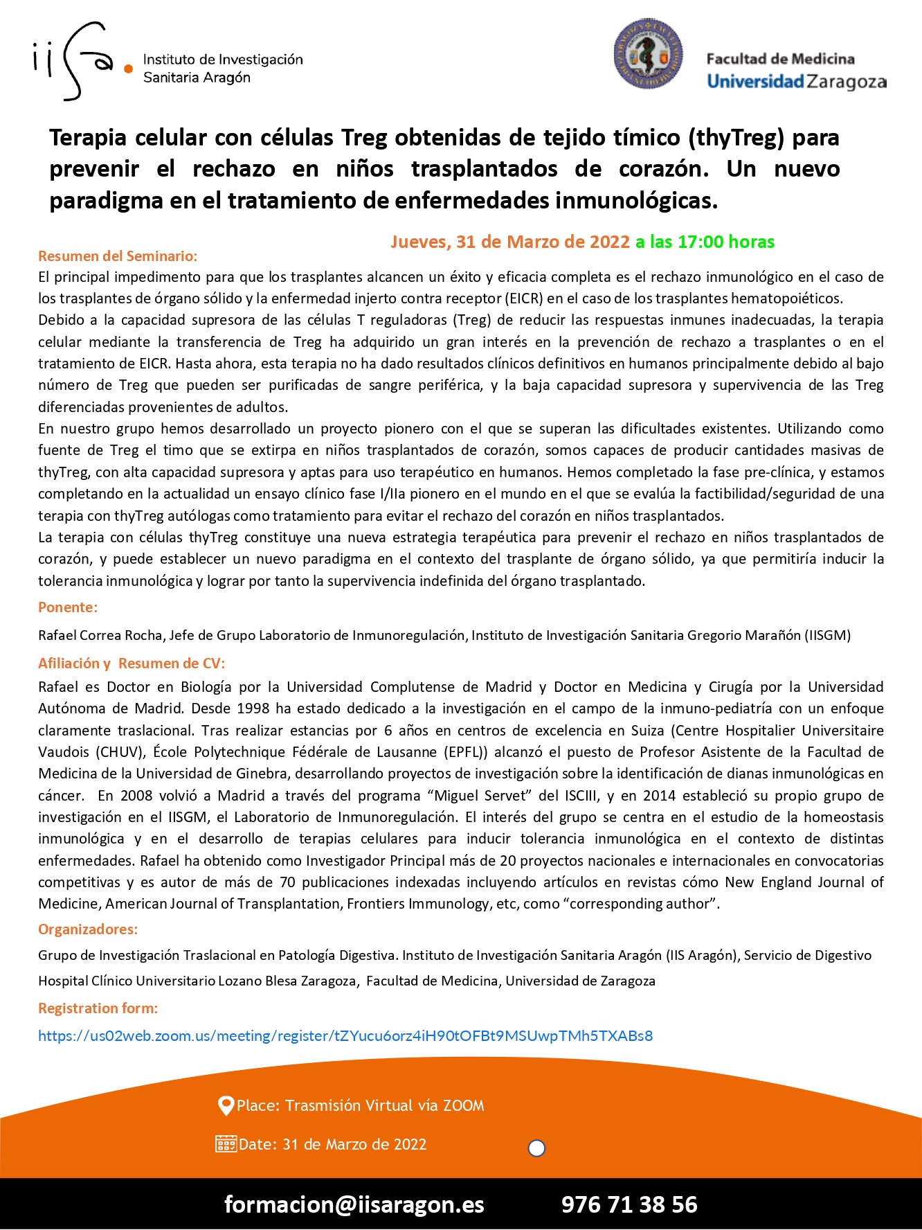 Seminario Científico “Terapia celular con células Treg obtenidas de tejido tímico (thyTreg) para prevenir el rechazo en niños trasplantados de corazón. Un nuevo paradigma en el tratamiento de enfermedades inmunológicas”