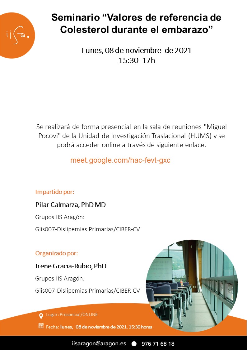 El próximo Lunes 08 de noviembre de 2021 de 15:30 a 17:00 horas tendrá lugar el Seminario Científico “Valores de referencia de Colesterol durante el embarazo”