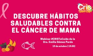 Hoy, lunes, 19 de octubre, es el Día Internacional Contra el Cáncer de Mama, y en el marco de esta importante fecha, CRIS contra el cáncer ha organizado un taller online para concienciar a las mujeres sobre la importancia que juega el mantenimiento de unos hábitos saludables a la hora de prevenirlo. Se trata de un encuentro gratuito, que estará dirigido por la doctora Emilia Gómez Pardo, asesora científica de la organización.