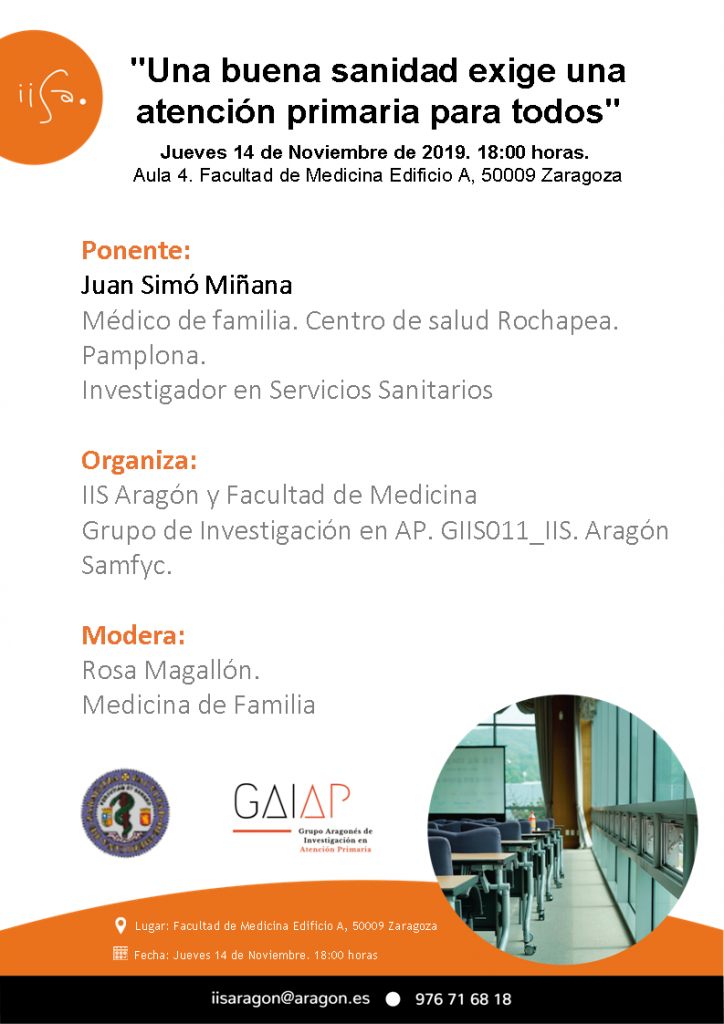 El próximo Jueves 14 de Noviembre de 2019 a las 18:00 horas. tendrá lugar el Seminario Biomédico «Una buena sanidad exige una atención primaria para todos»