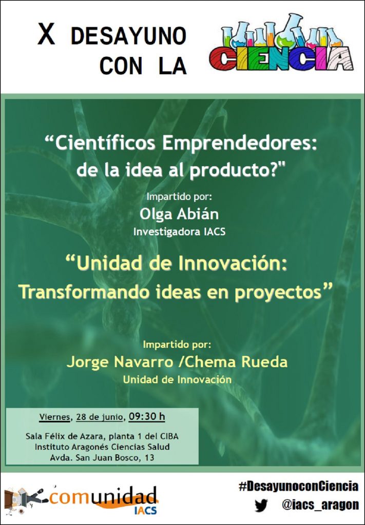 El Instituto Aragonés de Ciencias de la Salud organiza el «X Desayuno con la Ciencia», el próximo viernes, 28 de junio a las 9.30 horas en la Sala Félix de Azara del Edificio CIBA.