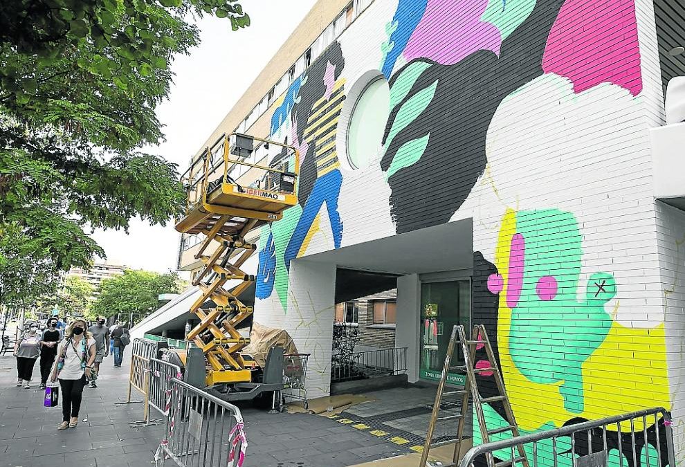 Junto al gran mural, que tiene una parte frontal (de 10 metros de ancho por 8 de alto), y las dos rampas laterales, se sustituirán también los casi 300 estores de las ventanas, que formarán parte de la intervención artística. Está previsto que los trabajos, que comenzaron el lunes, se prolonguen hasta finales de la próxima semana.