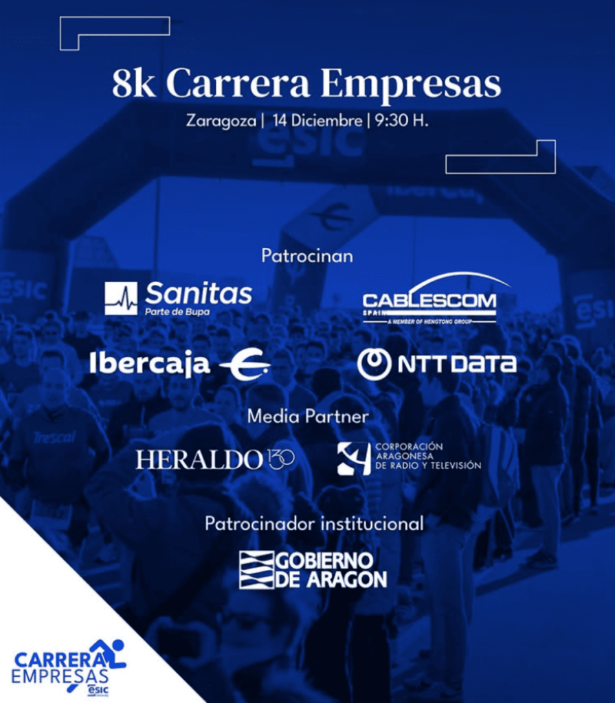 12 noviembre, 2025La Carrera de Empresas ESIC 2025 se celebra el domingo 14 de diciembre y cuenta con un recorrido de 8 kilómetros por el centro de Zaragoza