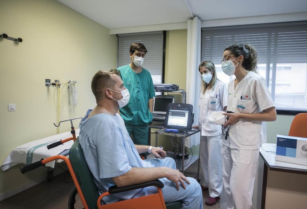 "En tiempos de pandemia, lo que hace esta técnica es evitar 1.900 consultas este año de pacientes de riesgo, reduciendo de forma muy importante la presión hospitalaria", resume. Desde la primavera de 2020, aprovechando los descansos entre las ondas epidémicas, el hospital entregó a las personas que atienden en este servicio mucho de los monitores que permiten controlar en remoto el marcapasos: "La aceptación entre nuestra población ha sido espectacular, ningún paciente ha rechazado estar monitorizado con esta tecnología". Al mismo tiempo, el responsable de la Unidad de Arritmias recuerda que esta iniciativa "se ha podido llevar a cabo gracias al empuje del doctor Ruiz Arroyo, jefe de servicio de Cardiología, y de la dirección del centro. Ha sido un trabajo de equipo entre un grupo de médicos y enfermeros muy motivados". Con esta estrategia, se ha convertido en un referente nacional implantando una novedosa técnica, la estimulación fisiológica de rama izquierda que consiste en implantar un dispositivo que activa el corazón por la vía natural del impulso cardíaco en la materia. Según varios estudios, la estimulación fisiológica en pacientes que precisan un marcapasos reduce la hospitalización por insuficiencia cardíaca, las arritmias y la mortalidad hasta en un 21% respecto al implante de un marcapasos convencional. Tanto es así que la Unidad de Arritmias ya ha contribuido a la formación de hasta 15 centros nacionales de reconocido prestigio repartidos por el territorio nacional. Hasta 190 pacientes han sido tratados ya con esta técnica pionera.