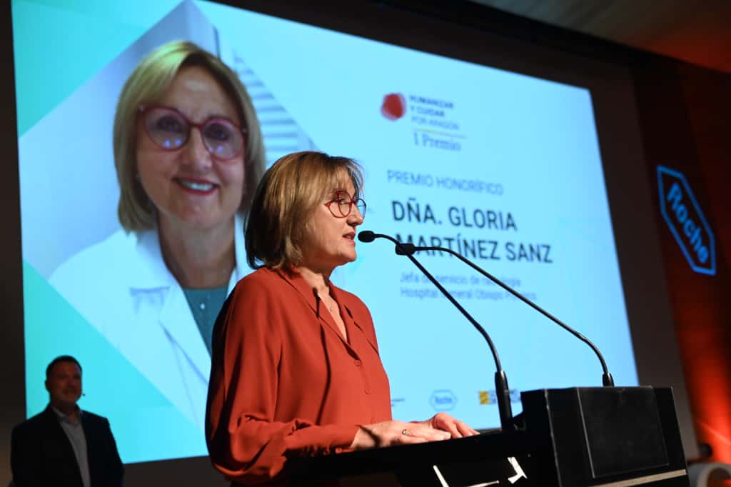 El acto de entrega ha tenido lugar este jueves 25 por la tarde en CaixaForum Zaragoza. Ha sido presidido por la directora general de Cuidados y Humanización, Estíbaliz Tolosa. En representación de Roche Farma España, ha asistido la directora regional para la zona Noreste, y por el Instituto de Investigación Sanitaria de Aragón su director ejecutivo, Óscar López.