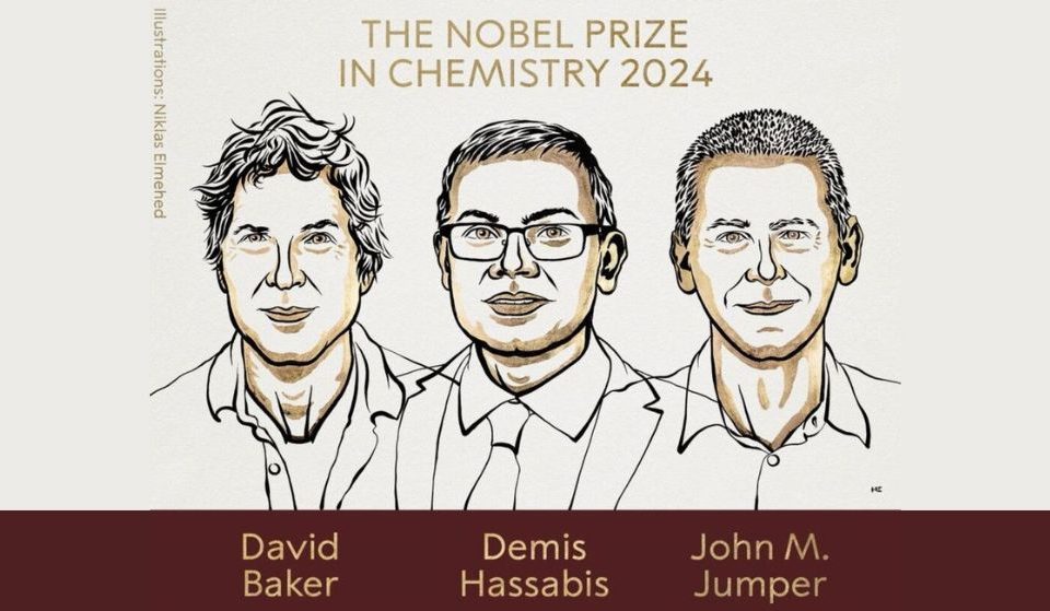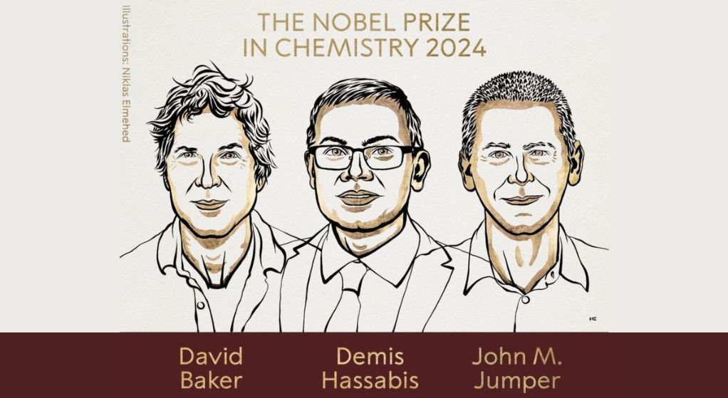 El Premio Nobel de Química 2024 fue otorgado conjuntamente a David Baker por el diseño computacional de proteínas y a Demis Hassabis y John M. Jumper por la predicción de la estructura de las proteínas.