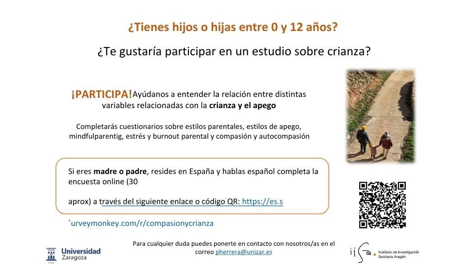 Bajo el título "Compasión y crianza: educar desde el apego seguro" varias profesoras y profesores del Departamento de Psicología y Sociología de la Universidad de Zaragoza y del IIS Aragón arrancan esta investigación.