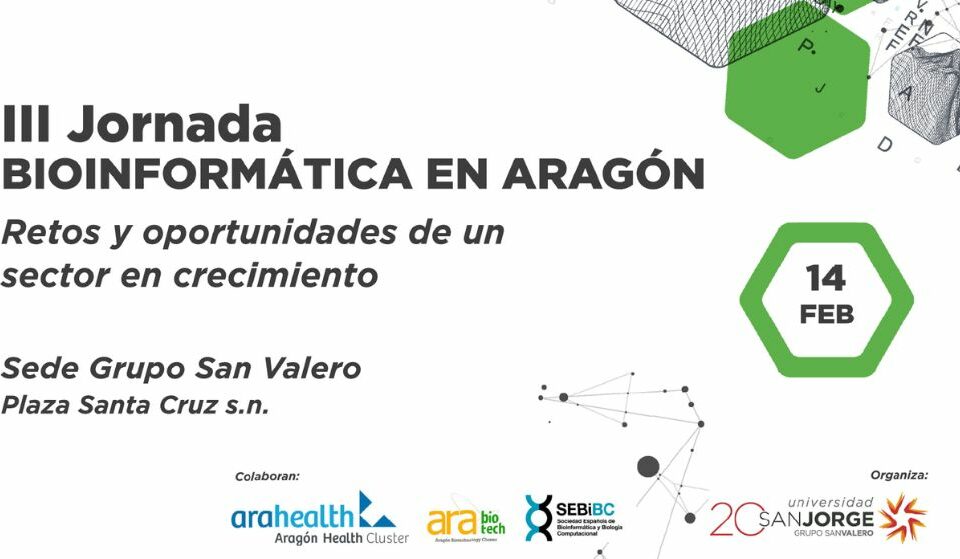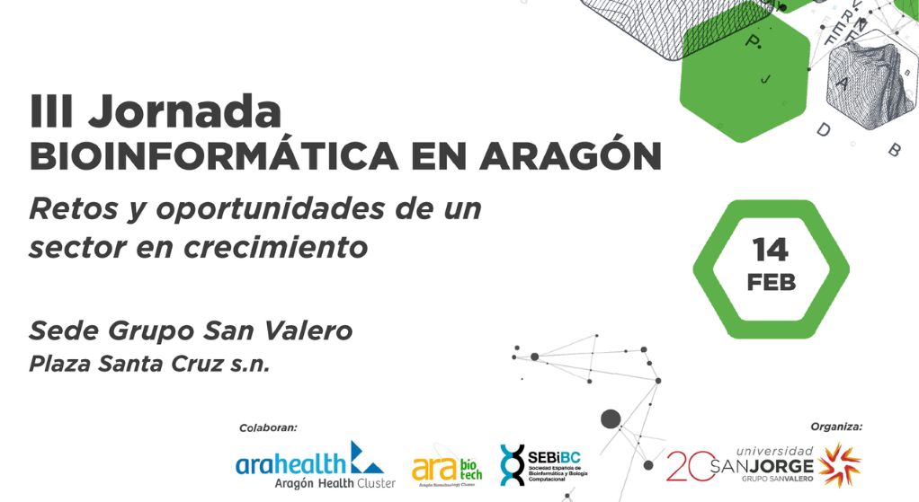 Tres investigadores del IIS Aragón participan en este evento organizado por el Grupo San Valero con la colaboración de los clusters AraHealth y AraBiotech, y con la Sociedad Española de Bioinformática y Biología Computacional (SEBiBC).