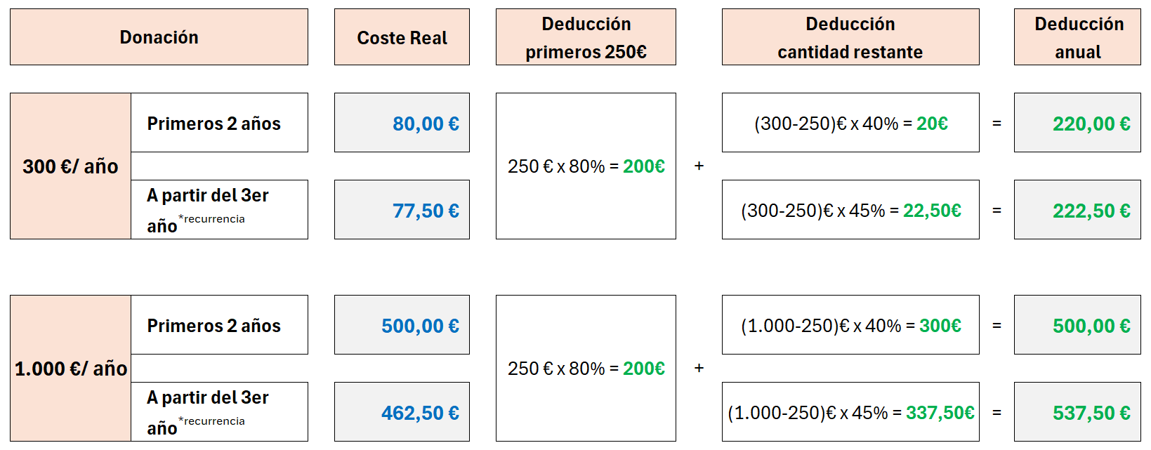 - Si eres persona física o jurídica no residente en España y obtienes rentas en nuestro país, tienes también un beneficio fiscal por el importe de tus donativos.